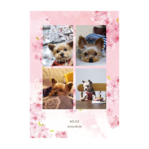 4コマの写真部分が証明写真の定番サイズ(40mm×30mm)に剝がせるハーフカットタイプ。アップの顔写真を入れるとSNSで人気のペットの証明写真風に! 下のスペースにはペットのお名前や日付、お好きなメッセージを入れられます。 1年の思い出記録にぴったりなわんにゃんカレンダーオリジナルの季節デザインです。 大切なペットの写真でおしゃれなフォトグレイを作ってみませんか?