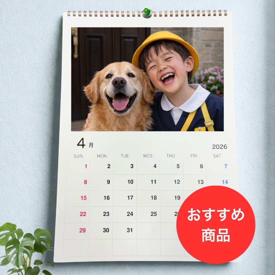 大きくて見やすい便利な壁掛けタイプ 【選ばれる理由】 ・新生活に便利:スケジュール管理しやすい「4月始まり」。 ・1冊から作成可能:ご自宅用はもちろん、贈り物にも。 ・高品質な仕上がり:お気に入りの写真が365日の癒やしに。 ★こんなシーンにおすすめ! ・愛犬・愛猫のベストショットを集めた自分へのご褒美に ・入学・卒業のお祝いや、成長記録として ・離れて暮らすご家族への「元気が出る」プレゼントに この機会に、世界に一つだけのカレンダーをぜひお試しください。 ※わんにゃんカレンダーについてはこちら